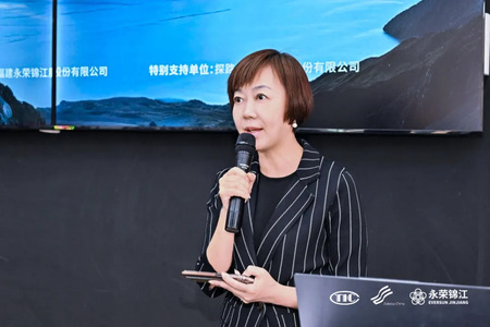 在《永荣股份差异化锦纶产品及未来趋势》分享中,福建永荣锦江股份有限公司技术研发资深工程师金志学介绍了可个性化定制功能的锦康纱?、实现科技与自然融合的锦逸纱?、绿色低碳环保的锦生纱?的永荣股份“三根纱”高端差异化产品矩阵,他表示,锦纶在防晒衣、冲锋衣、羽绒服、户外装备上均能实现高效应用,未来锦纶可在消费者的基础需求之上,考虑防护、社交、自我等方面的需求,提升产品的附加价值。