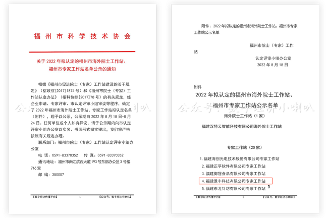 近日,福州市院士(专家)工作站认定评审小组办公室发布《关于2022年拟认定的福州市海外院士工作站、福州市专家工作站名单公示的通知》,福建景丰科技有限公司位列其中,成为福州市专家工作站的20家公司之一。