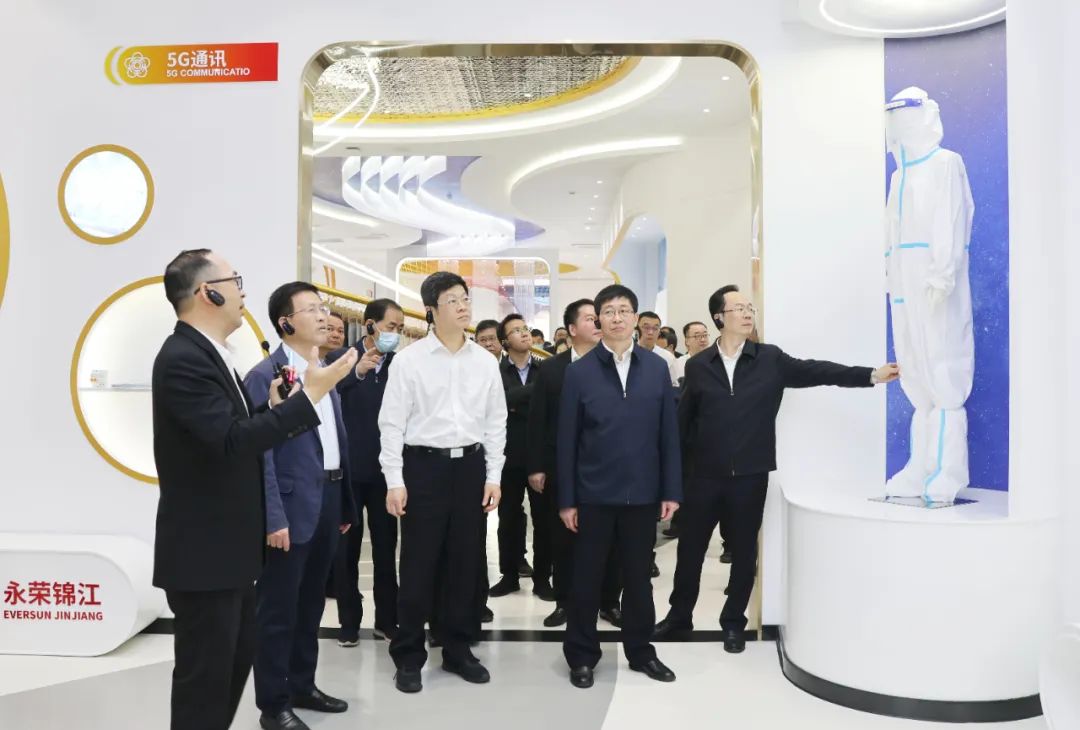 带着相关问题,省领导一行在吴华新董事长的带领下,参观了永荣股份数字展厅、产品展示厅和智能生产车间,详细了解公司的发展历程、行业地位、产业链结构与布局、产品特性、发展规划以及尼龙产品终端应用领域等情况,着重了解公司数字化转型升级成果及未来智能制造发展规划。在智能化生产车间,省领导一行现场认真观摩了5G+混合专网、5G+智能应用场景的实际运行状况。