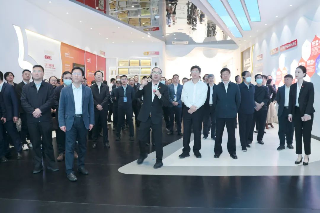 10日上午,福建省副省长林瑞良、省政府党组成员康涛等领导一行莅临永荣股份调研产业数字化转型工作,各设区市和平潭综合实验区、省直相关部门负责人,相关企业、行业协会、专家代表参与活动。永荣股份董事长吴华新、董事陈飞热情接待。