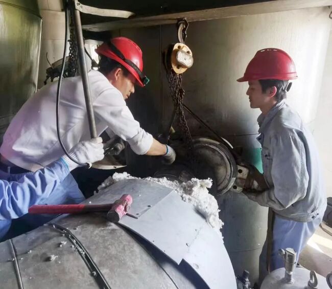 3月,虽还未进入夏天,但车间的温度已犹如酷暑。永荣股份聚合厂按计划进行了回收系统停机检修工作。此次检修因系统原因,时间紧任务重,聚合一部与聚合二部MVR检修及生管电仪变压器检修工作存在交叉,整个过程需各部门各岗位人员配合密切,加班加点,有条不紊地进行才能确保安全、高效检修。