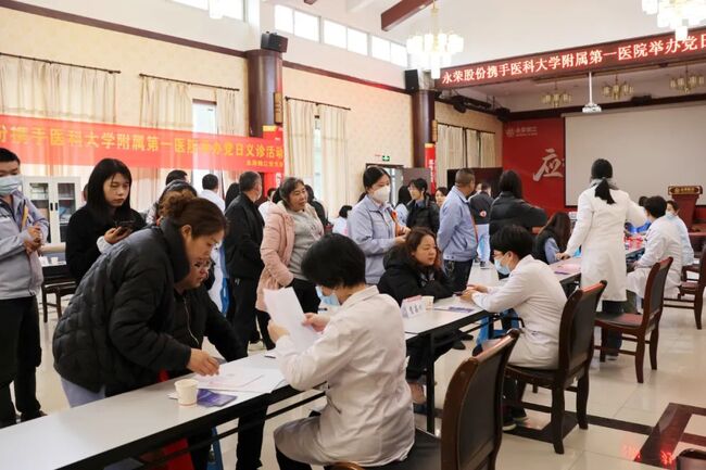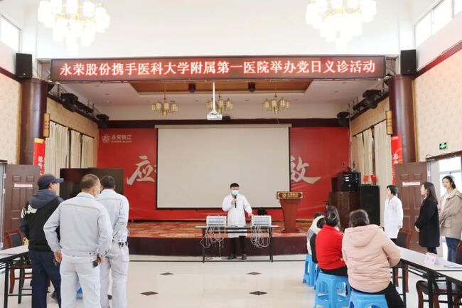 为引导永荣人建立正确健康观,科学养护身心,正确预防疾。佣涤薪】档纳硖澹腋5纳睿3月18日上午,永荣股份党支部携手福建医科大学附属第一医院十二位主任医师,在永荣股份锦簇堂开展“党日职工义诊”活动。永荣股份党支部书记杨金富出席活动现场。