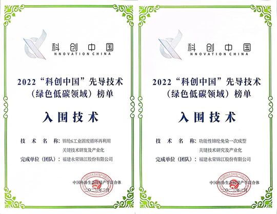 近日,根据中国科学技术协会公布的2022年“科创中国”系列榜单,中国科协经初评、终评,遴选出先导技术榜178项。其中,福建永荣锦江股份有限公司“功能性锦纶免染一次成型关键技术研究及产业化”和“锦纶6工业固废循环再利用关键技术研发及产业化”2项技术成功入围“先导技术榜”(绿色低碳领域)榜单。
