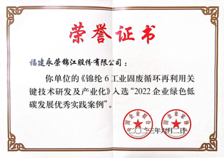 为了全面学习贯彻党的二十大精神,深入贯彻新发展理念,构建新发展格局,按照碳达峰、碳中和的战略目标,中国企业联合会组织开展了“2022企业绿色低碳发展优秀实践案例”的征集活动。福建永荣锦江股份优秀公司申报的《锦纶6工业固废循环再利用关键技术研发及产业化》成功入。浞终孟粤宋宜疽钥萍几衬苈躺偷母咧柿糠⒄估砟。
