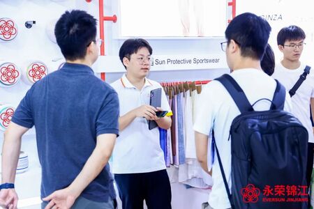 展位前,前来参观和走访的客户络绎不绝,成为展馆里最耀眼的“明星”。为引领绿色消费新理念,拓展锦纶纤维应用边界,永荣股份不断推陈出新,积极探寻当下休闲、舒适、健康的无限可能,为纺织现代化产业体系建设树立了新标杆。