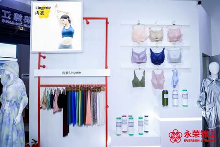 作为“中国纺联功能性聚酰胺纤维产品开发基地”,永荣股份已打通从“苯——己内酰胺——锦纶切片——锦纶”上下游产业链,形成了内酰胺(CPL)、锦纶聚合切片和锦纶纤维三大品类,广泛应用于服装、运动、休闲、健康、医疗、汽车等各个领域。为展示锦纶的多元时尚,本次永荣股份特划分色纱及功能性产品区、潮流女装区、运动防晒区、瑜伽区、内衣区、可持续区、中心展示区,集中展示了锦纶色母粒、织带、纱线、面料、成衣等创新产品。