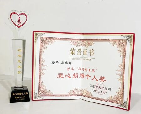 “福建慈善奖”是经中央批准设立的福建慈善领域最高奖项。永荣股份董事长吴华新荣获首届“爱心捐赠个人”荣誉奖项。