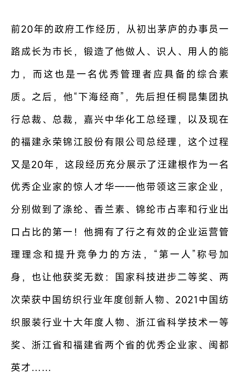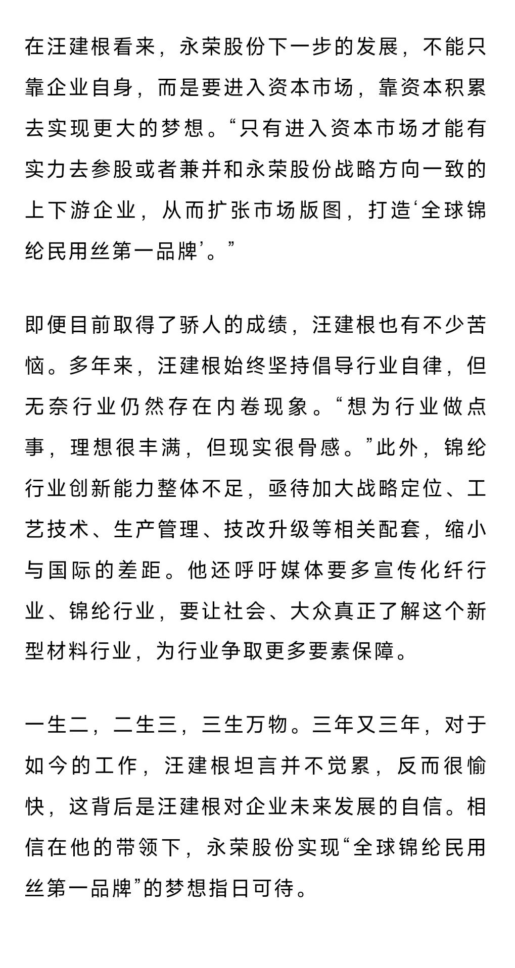 封面人物 | 汪建根:策马扬鞭,打造全球锦纶民用丝领先品牌