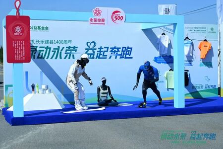 除此之外,马拉松起点处设置永荣股份锦康纱?终端成衣展示点,现场参赛选手通过打卡拍照,触摸体验感受到功能性锦纶面料的舒适感与独特魅力。