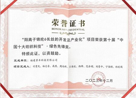 12月22日,在福建晋江举办的2023中国纺织科技成果对接峰会暨第十届“中国十大纺织科技”发布会上,永荣股份申报的“遮热抗紫外锦纶6长丝的功能复合技术开发与产业化”项目以及“阳离子锦纶6长丝的开发及产业化”项目分别荣获“中国十大纺织科技·新锐科技奖”和“中国十大纺织科技·绿色先锋奖”两大奖项。据悉,永荣股份已连续四次荣获中国十大纺织科技奖项,充分展现了我司用科技力量引领纺织服装行业高质量发展的实力。