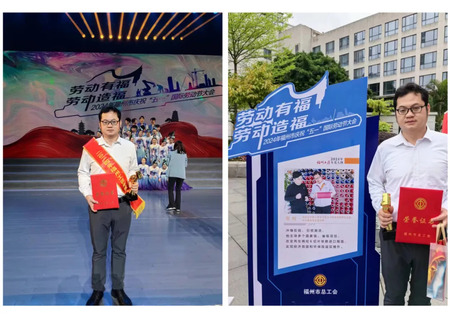 4月30日上午,福州市总工会在福州工人文化宫举办“劳动有福 劳动造福”福州市庆祝“五一”国际劳动节大会暨2024年“福州工匠年度人物”表彰大会。在本次大会上,福建永荣锦江股份有限公司时尚服饰研发部总监黎明荣获2024年“福州工匠年度人物”称号并接受表彰。