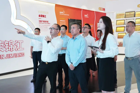 在吴华新的陪同下,参观团首先参观了永荣股份的数字展厅。展厅内,先进的数字化展示手段向参观团呈现了永荣股份的发展历程、行业地位以及产业链结构。随后,参观团深入自动化生产车间和加弹车间,详细了解了永荣股份产品的特性、生产工艺以及发展规划。