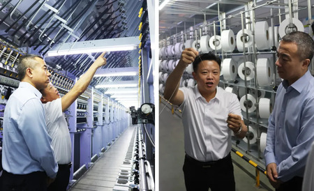 在参观过程中,参观团对永荣股份在智能化生产方面的投入和成果表示了浓厚的兴趣。他们走进智能化生产车间一线,近距离观摩了智能纺丝系统、智能落筒机器人等高科技设备的运作情况,并对自动化立体仓库的高效运作表示了高度赞扬。