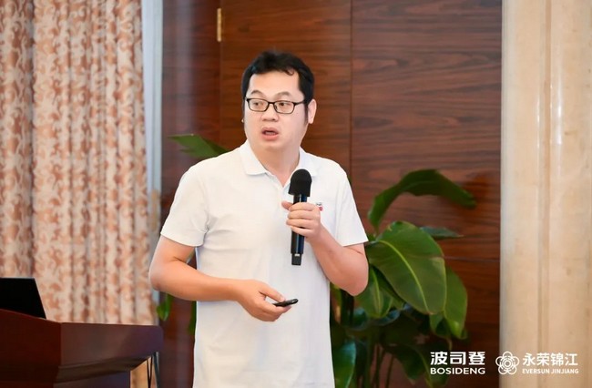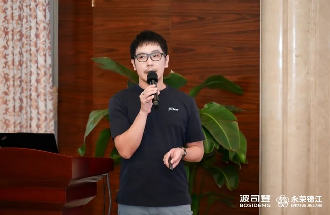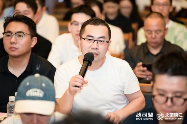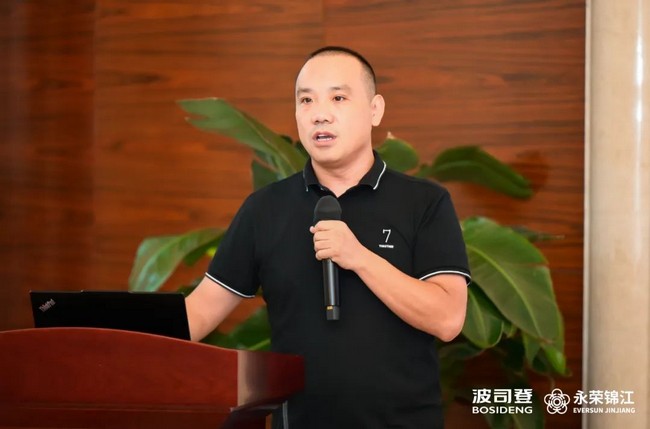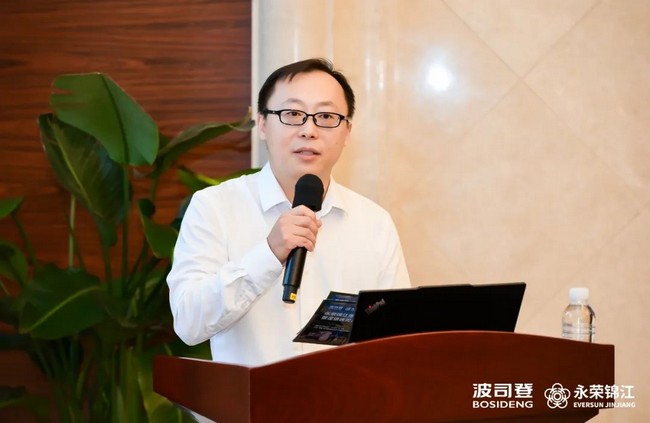 汪建根在致辞中表示,希望参会嘉宾能够在户外、御寒以及保暖舒适等方面对永荣锦江的产品提出更好指导和建议。永荣锦江作为中国民用锦纶技术的龙头企业之一,近年来围绕打造中国民用锦纶纱线第一品牌的目标,不断努力探索,开展了以功能性为核心的锦康纱、以高端差异化为核心的锦逸纱、以绿色低碳为核心的锦生纱的“三根纱”系列产品的研究,取得了良好的成果,产品在行业下游得到了广泛的应用。