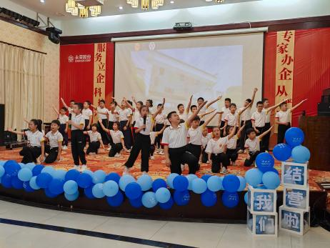 夏日炎炎,热情似火;不负暑托,梦想永荣。8月16日,永荣股份第五届职工子女暑托班在永荣股份锦江厂锦簇堂正式结营,不仅为孩子们的暑假生活画上了完美的句点,更为他们的成长旅程增添了浓墨重彩的一笔。长乐区总工会副主席何迎春、永荣股份工会副主席刘斌、行政部经理刘文、朝阳社工理事长吴新花、老师、学生及家长共100余人共同见证了这一激动人心的时刻。