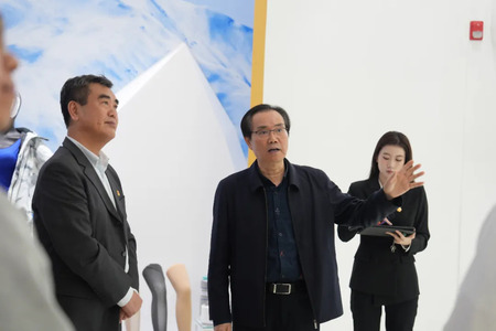 汪建根总经理化身解说员,向中化泉州石化的客人做了一场生动的解说。通过互动屏幕和多媒体展示,客人们仿佛置身于永荣股份的发展历程之中,对其在纺织新材料、智能制造等领域的探索与实践有了更为直观和深刻的认识。紧随其后的是纺丝车间参观,客人戴上耳麦,纺丝厂厂长付重亮带领一众走进自动化车间。在车间,现代化的生产线、智能机器人以及高效的工艺流程令客人频频点头。