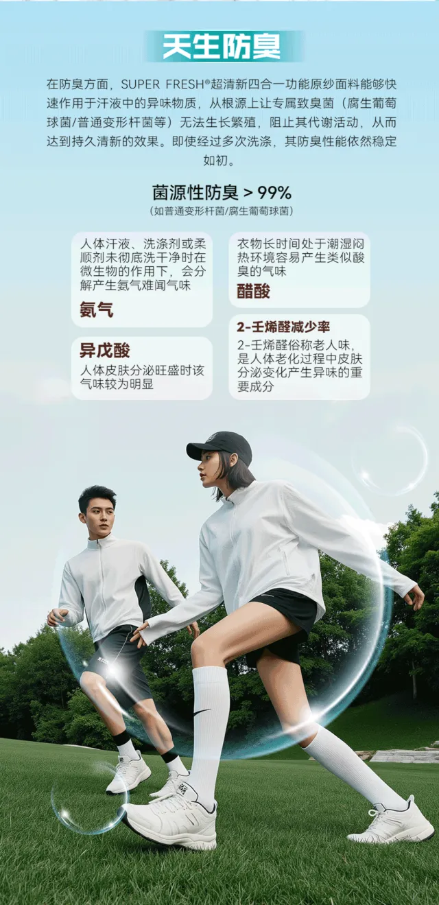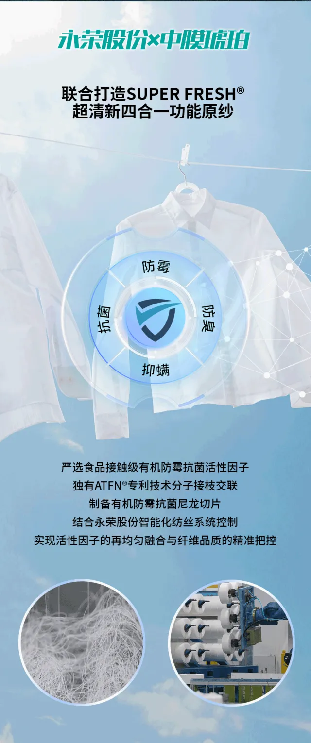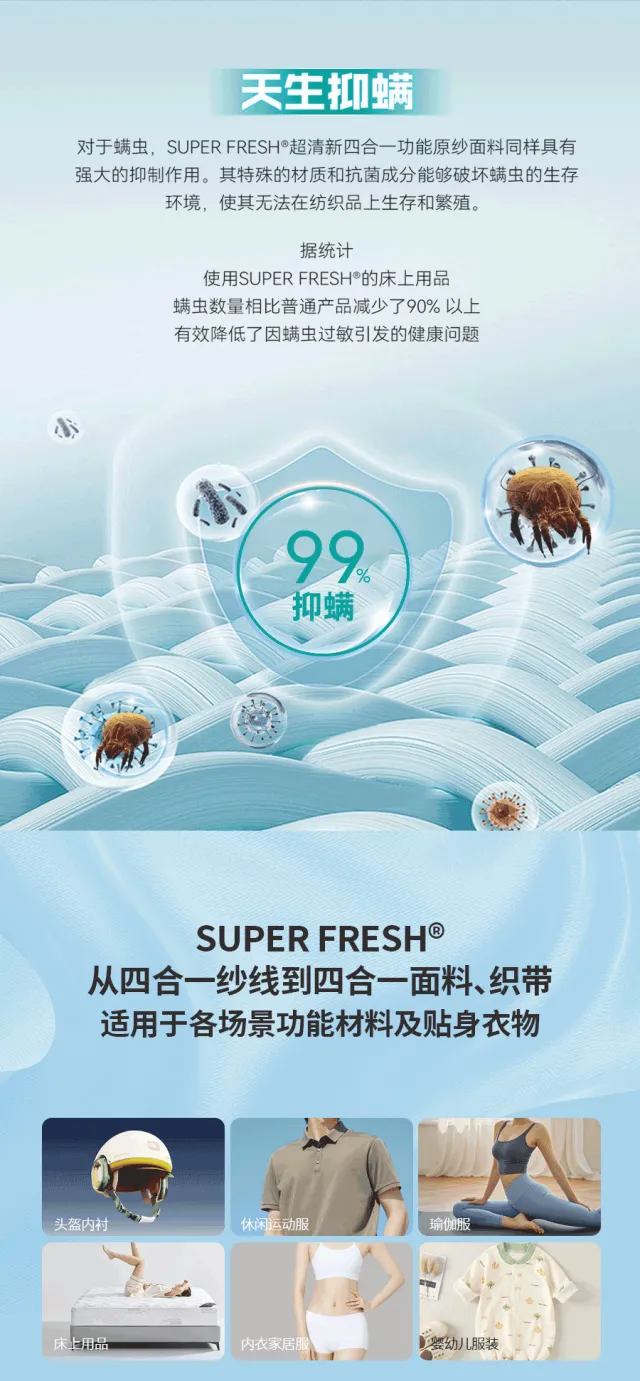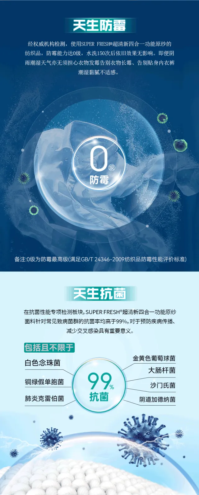 防霉抗菌四合一功能原纱,无惧霉菌,畅快呼吸