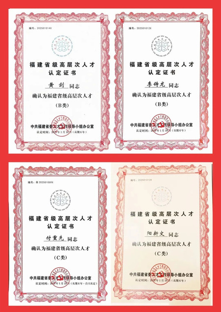 调研活动中,长乐区人社局领导还为永荣股份2024年新认定的4位省级高层次人才黄剑(B类)、李铸龙(B类)、付重先(C类)和阳新文(C类)颁发了人才证书。值得一提的是,此批次长乐区一共获批9位省高层次人才,我公司便占据了其中的4席,这一成绩不仅是对个人能力的肯定,更是对永荣股份在人才培养和引进方面所取得成绩的认可。