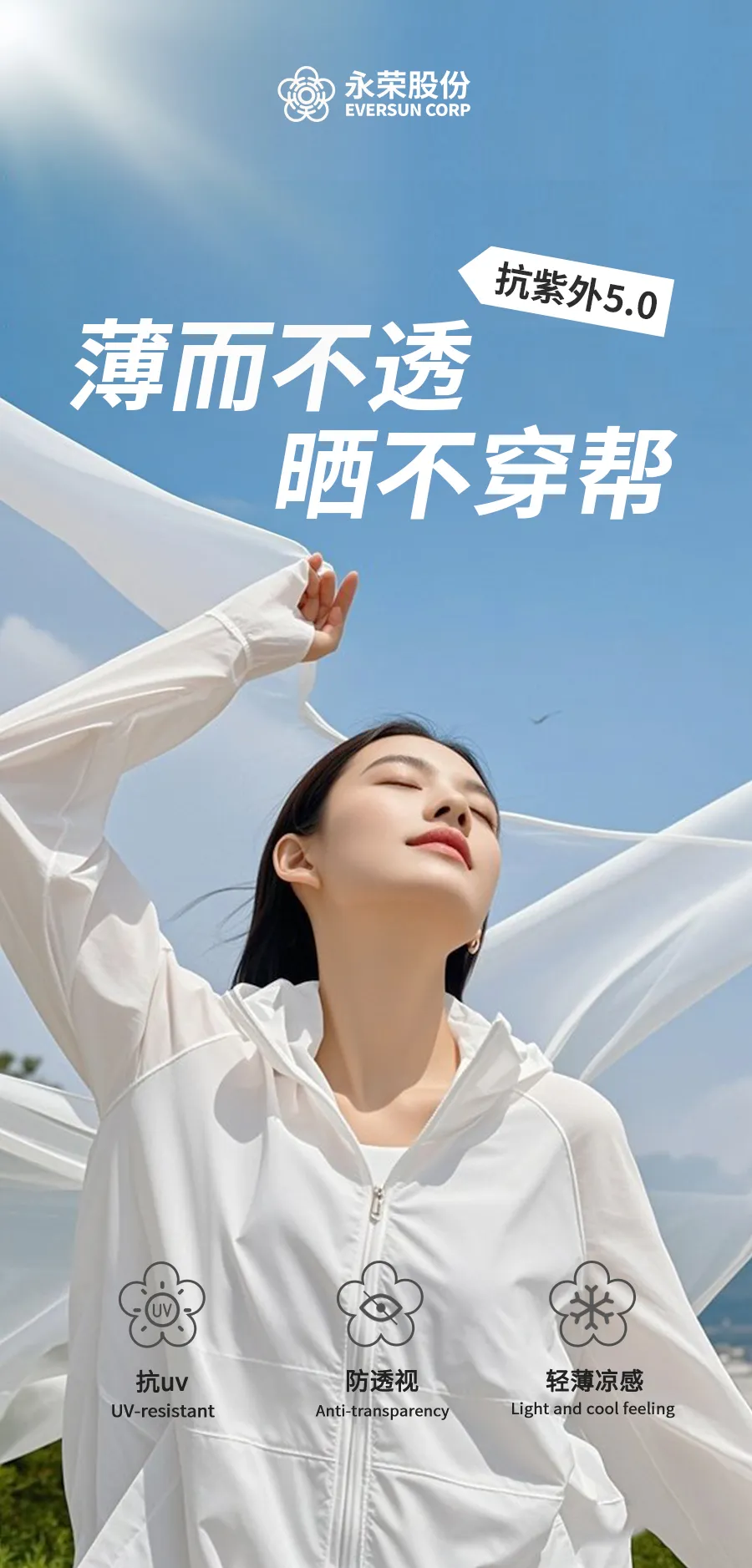 【永荣产品】抗紫外纤维5.0丨薄而不透,“晒不穿帮”