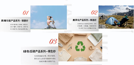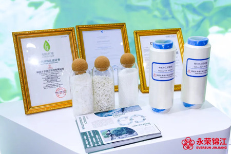 本次展会永荣锦江展位主要分为纱线展示区(包括功能性系列、低碳环保系列、差异化系列、色纱),以及中心的流行趋势呈现区域(包括安全防护需求、舒适功能需求、亲肤健康需求、生态环保需求、品质易护理需求)。绿色环保、功能健康、产业链规模是本次展会永荣股份展示的重点方向,主要展出产品为定位高端的功能产品系列“锦康纱?”、差异化产品系列“锦逸纱?”及绿色低碳产品系列“锦生纱?”三大品类。